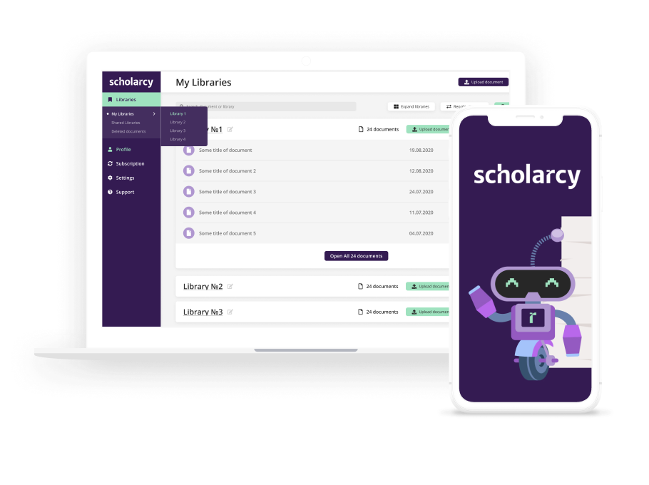 The task was to give Scholarcy a new design for better user engagement and also to simplify user actions with documents and libraries.